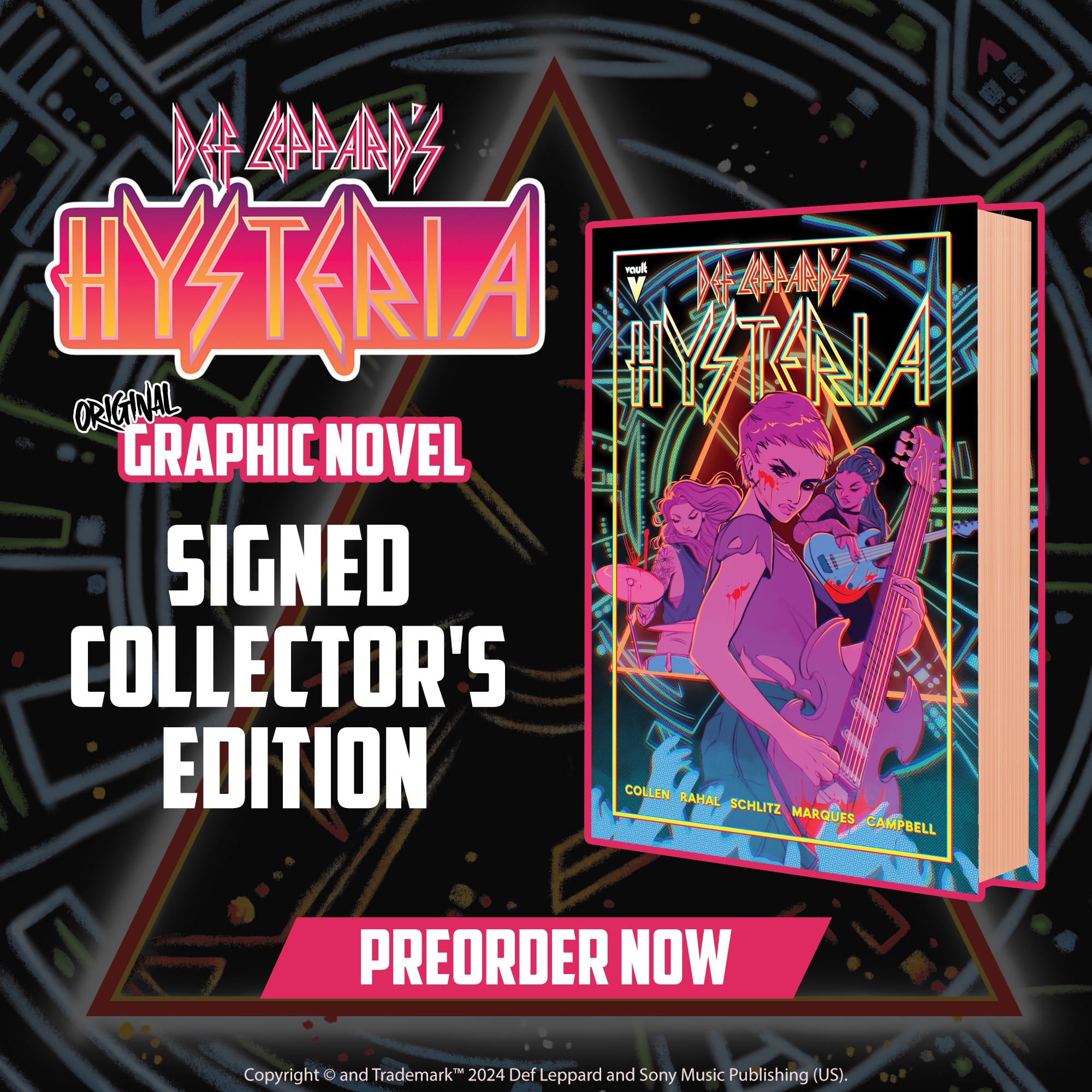 Def Leppard Fans, get ready for an electrifying experience! Def Leppard and the Vault Comics imprint, Headshell, are thrilled to announce a groundbreaking graphic novel collaboration, HYSTERIA. Def Leppard guitarist Phil Collen, acclaimed writer Eliot Rahal, and artist Alex Schlitz co-create this exciting project.