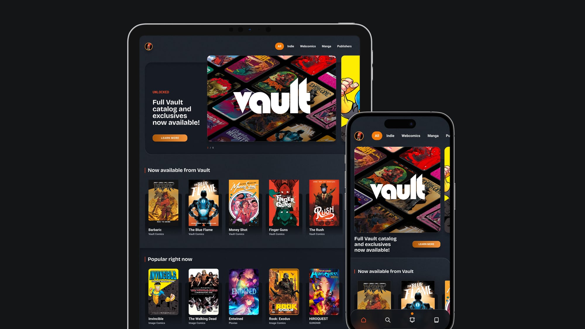 Vault Comics is an acclaimed publisher of bold science fiction, fantasy, and horror comics known for its hit titles, including Barbaric, Money Shot, and Heathen. Vault joins the robust roster of independent publishers available on GlobalComix, including Image Comics, BOOM! Studios, Oni Press, AWA Studios, Mad Cave Studios, and others.
