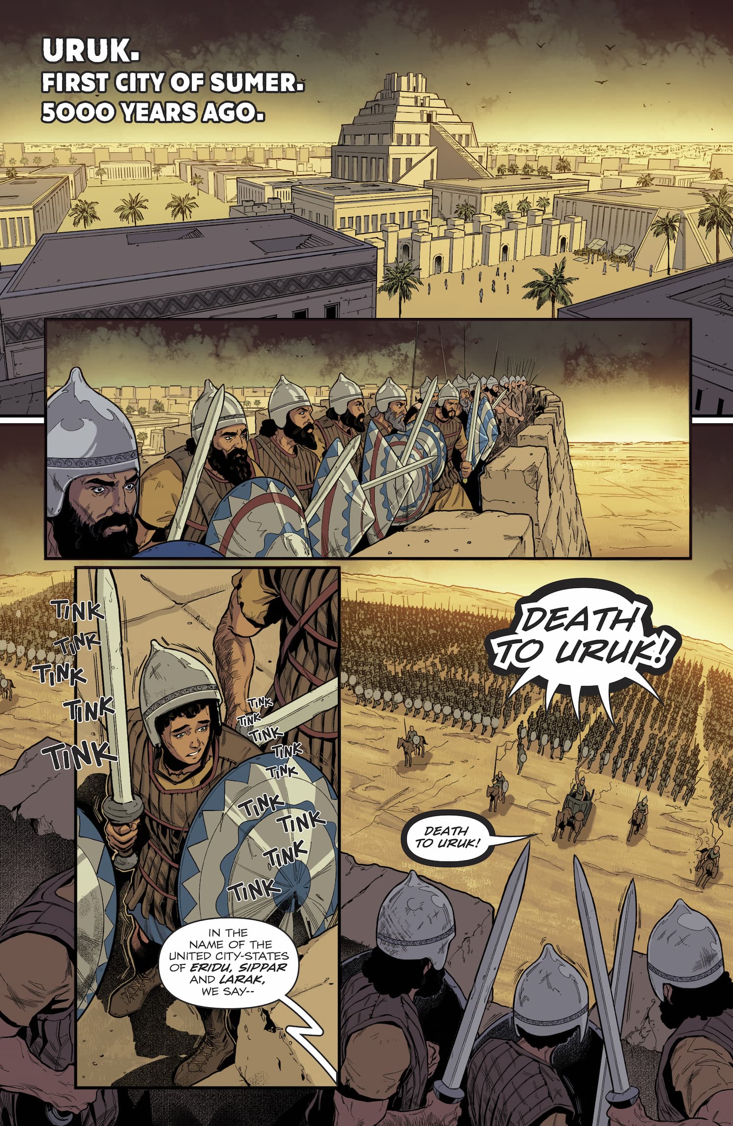 "I felt honored to be part of this Inanna project,” said Leal of the graphic novel. “I have always enjoyed telling good stories through my art, especially exploring themes such as fantasy, mythology, gods, and the medieval universe. Creating the concepts for characters, palaces, and settings was an enriching experience, made even more special with the support of Inanna Sarkis. Since Sarkis is of Assyrian descent, I was able to learn a lot about her culture and incorporate that knowledge into the work, which made the process even more enjoyable. Each chapter I illustrated was not only a creative challenge but also a constant learning experience, broadening my artistic and personal vision."