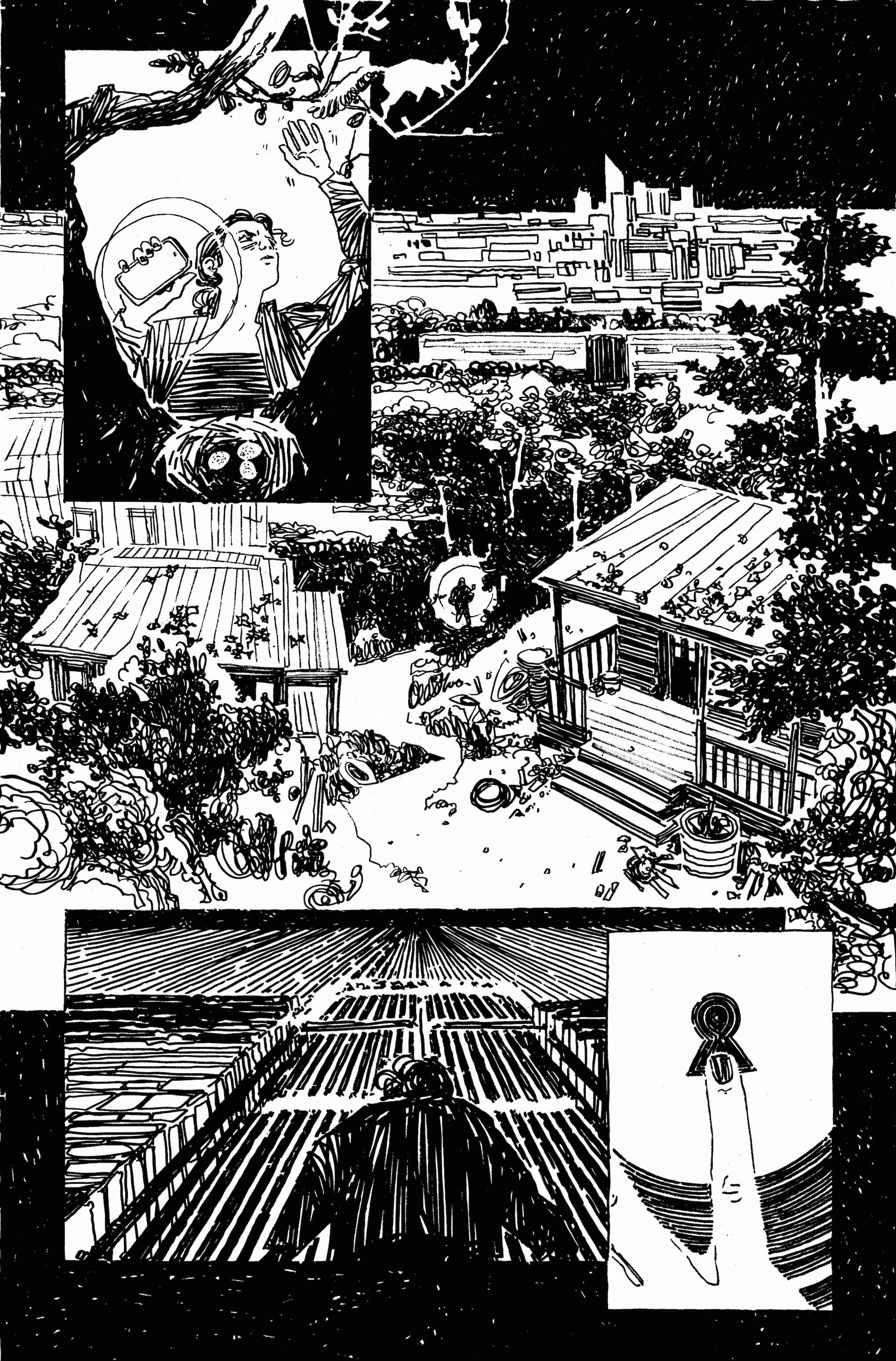 “The relationships Daniel created in this book are so delicate and fragile. As an artist, showcasing this through my linework was important so I took the creative choice of renewing my normal style of heavy blocks of ink and replacing it with textured pen scratches. This doubled the workload considering the length of the book but was totally worth it. Pairing that with Brad Simpson's excellent color choices and we ended up with a visual I'll always be proud of.”