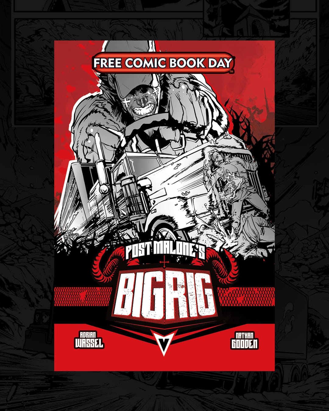 9x diamond-certified GRAMMY® Award-nominated Post Malone, Vault Comics, and Platinum Dunes team up to bring Post Malone’s Big Rig to Free Comic Book Day 2025. An original story created by the global superstar, Big Rig is written by Post Malone and Adrian Wassel, and drawn by Nathan Gooden (Barbaric, Brandon Sanderson’s Dark One, Dark Knights of Steel). The first chapter will be released exclusively at local comic shops on Free Comic Book Day 2025.