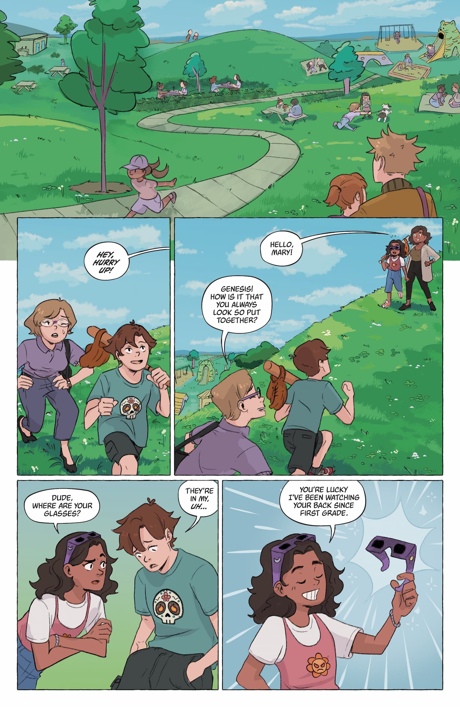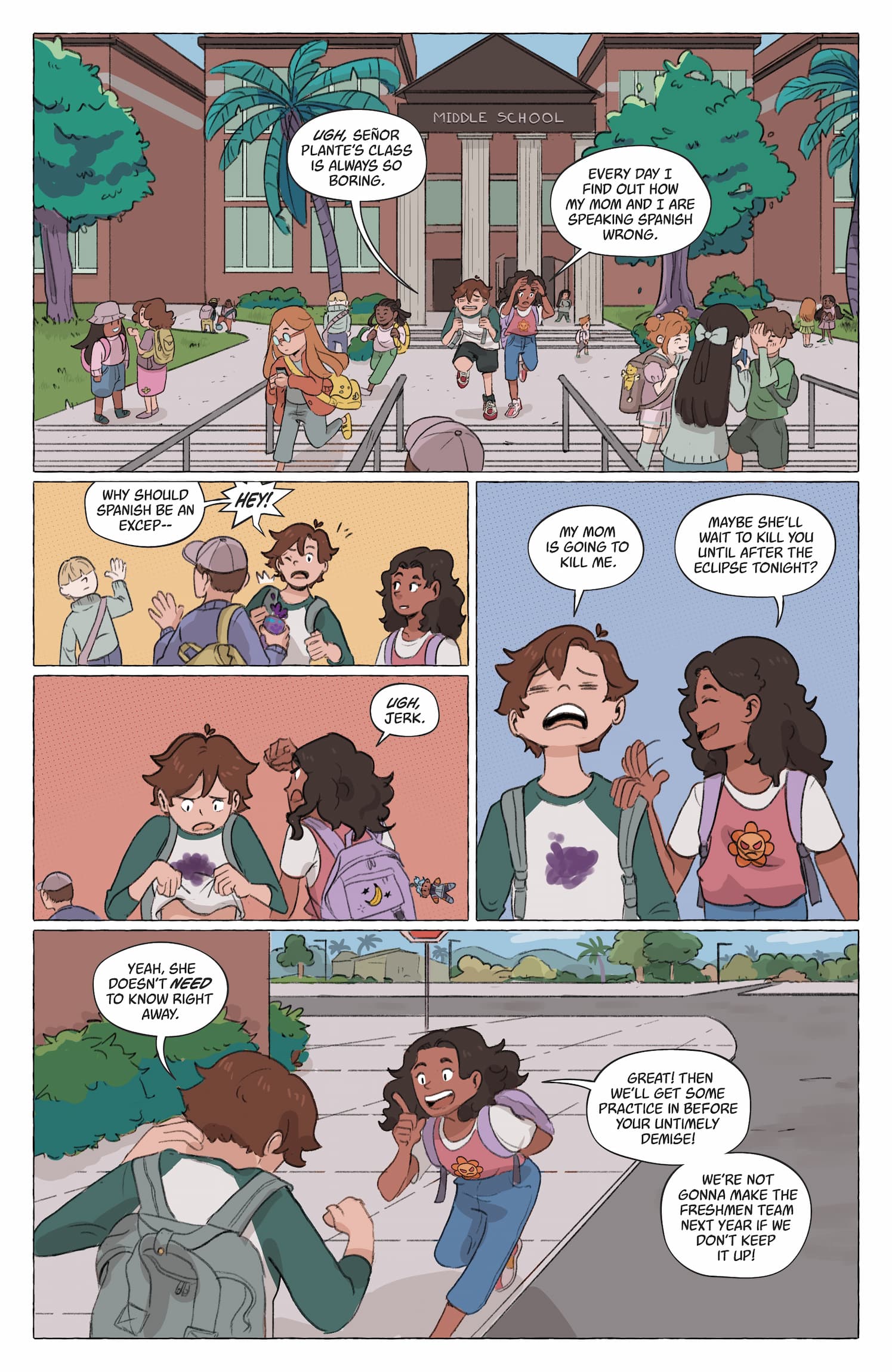 “I wrote this book for one person and one person only– my niece,” said Stack. “She'll be eleven when the book comes out, which is around the time I started thinking about a lot of the ideas that show up in it. How am I like my friends? How am I not? Why do we have this thing in common, this common heritage, but have such different experiences with it? Like our character Travis, I didn't really know how to talk about that or who to talk about that with. I felt a little cut off from the language and the people I needed for that. Travis and Yolanda, our book's co-lead, are both Mexican American, but their families and their experiences are genuinely very different. A lot of their conflict comes first from trying to pretend those differences don't exist and then believing that they're irreconcilable. I hope kids like my niece read our book and see that there's no expiration date on connecting with your heritage and embracing a larger community that can't be put into one, easily-defined box.”