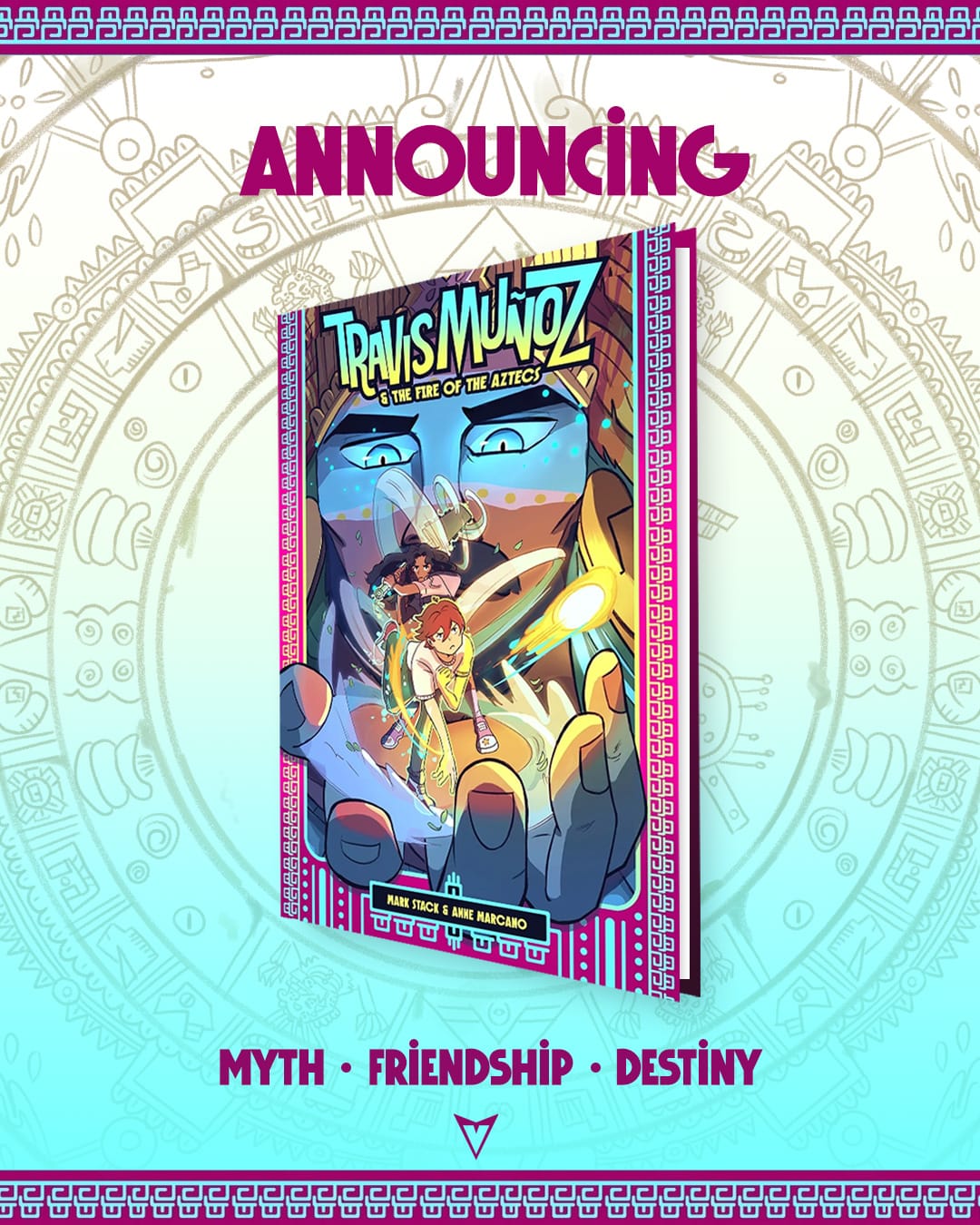 Vault is thrilled to unveil a first look at the incredible new middle-grade, graphic novel, Travis Muñoz and the Fire of the Aztecs. Presented by Emmy Award-winning actor and UN Women Spokesperson, Karla Souza, Travis Muñoz, and the Fire of the Aztecs is about Aztec mythology, best friends, and baseball—from breakout creators Mark Stack and Anne Marcano!